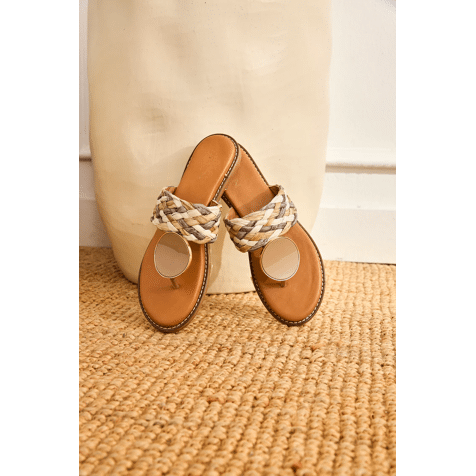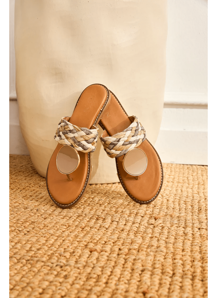 RAFFIA SANDAL WITH GLAZED ORNAMENT