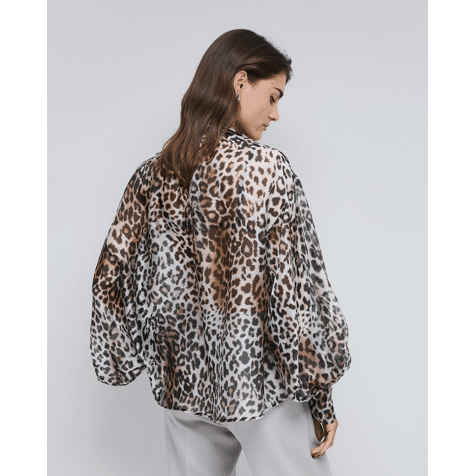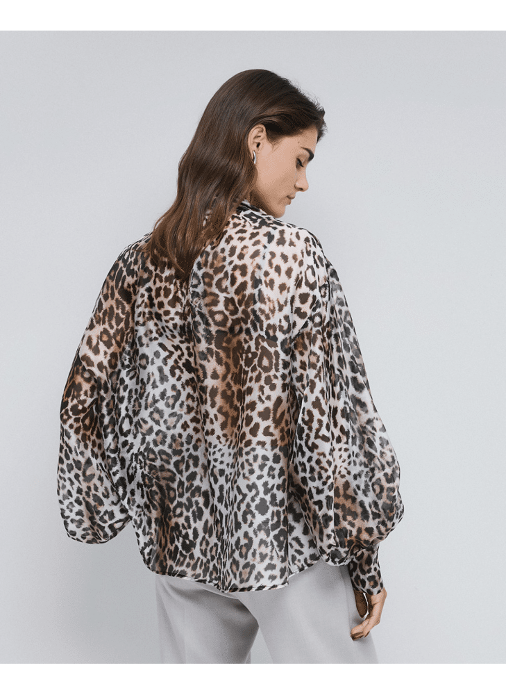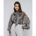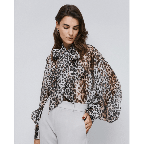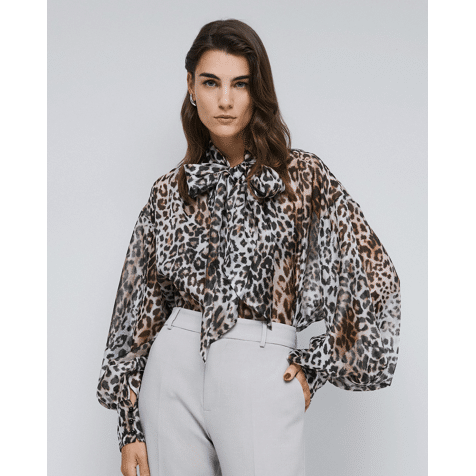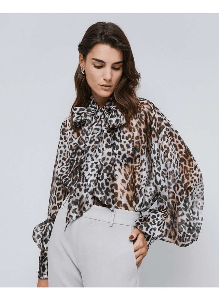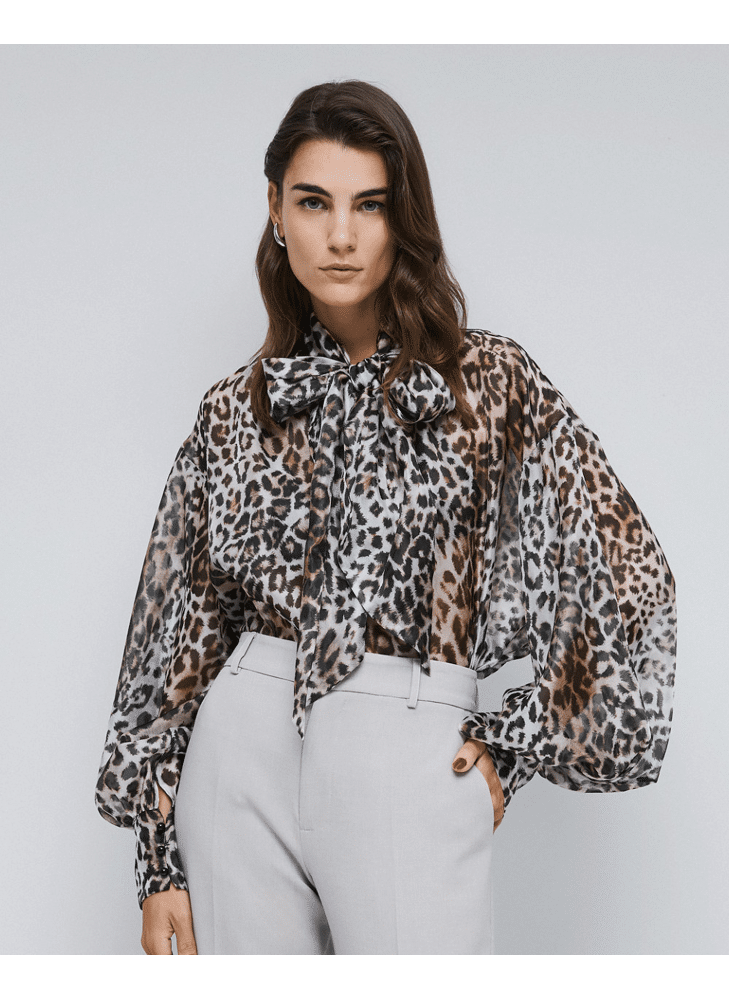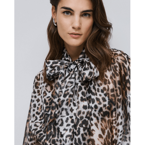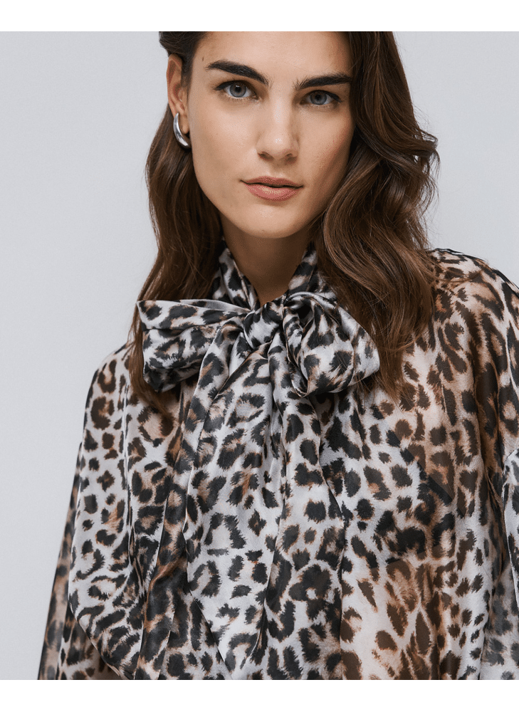 Leopard blouse with tie neckline