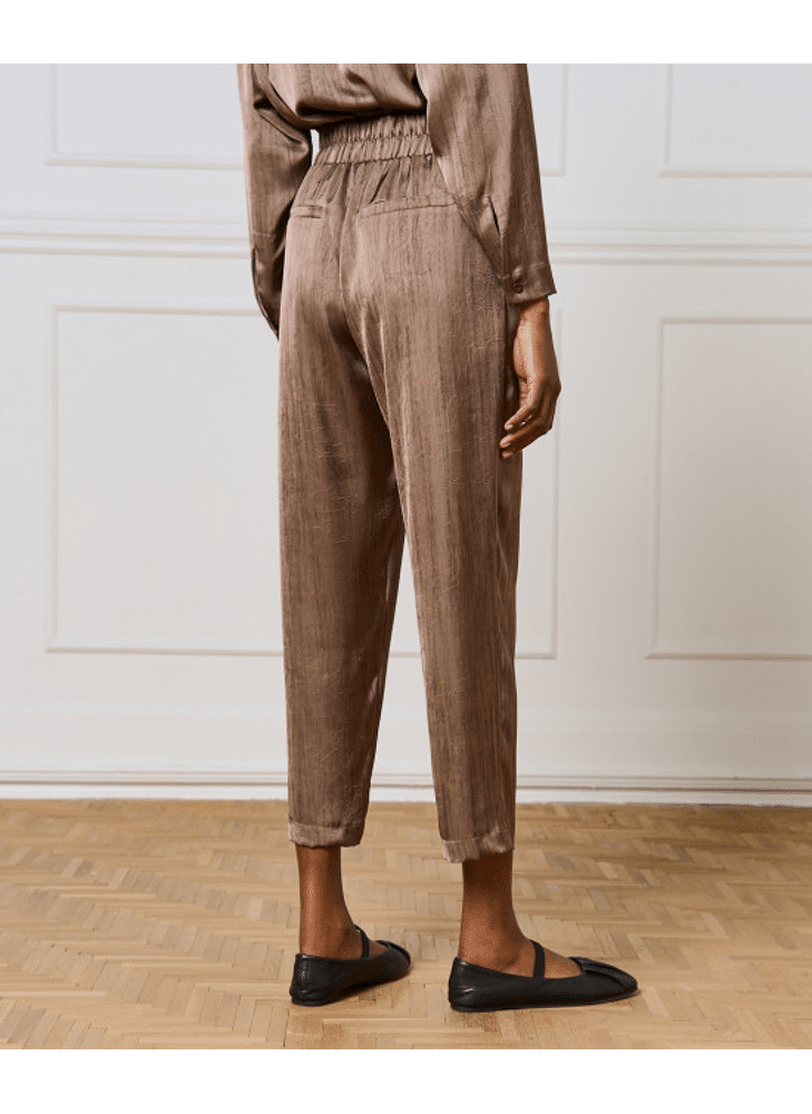 Satin pants with a crinkled effect